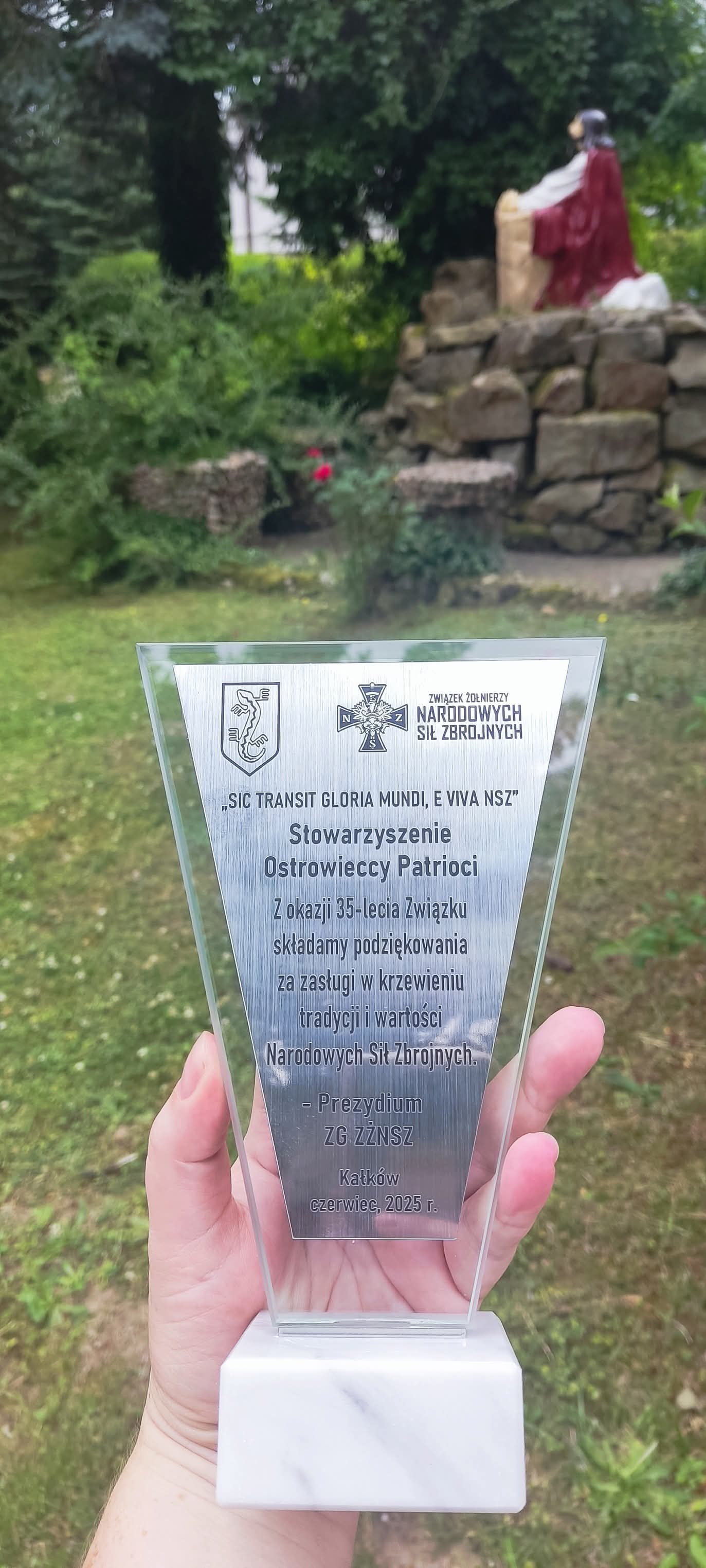 Przed mszą podczas spotkania członków i sympatyków ZŻNSZ otrzymaliśmy statuetkę za zasługi w krzewieniu tradycji i wartości Narodowych Sił Zbrojnych.